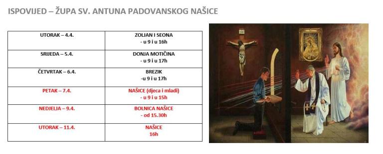 1. Sutra obilazimo bolesne i nemoćne u Našicama i Martinu za uskrsnu ispovijed s početkom...Pročitaj više